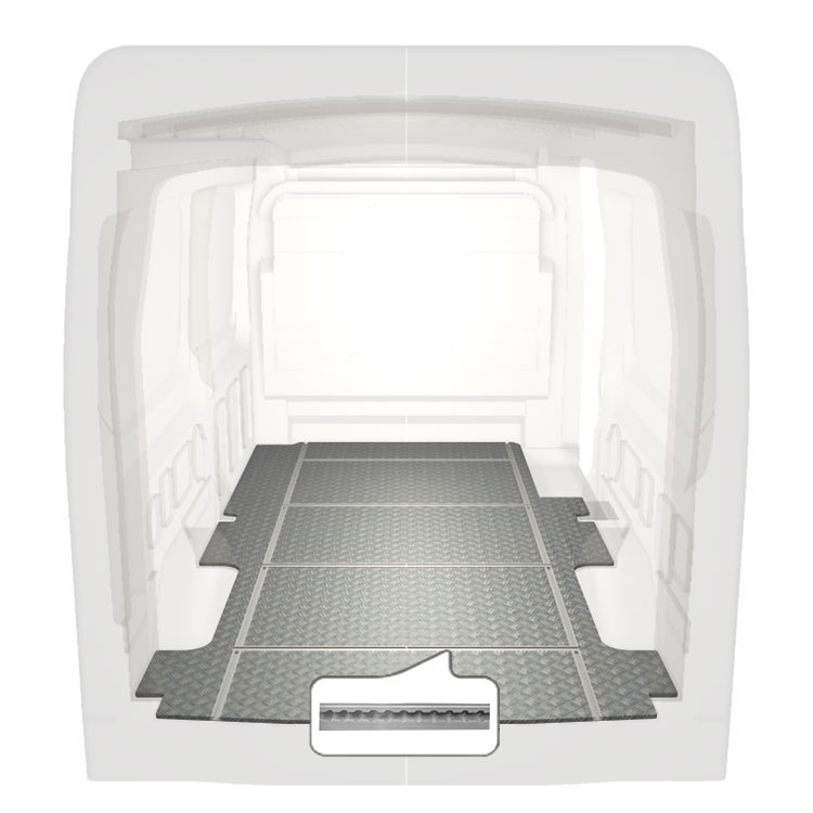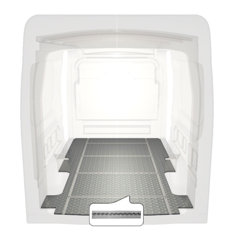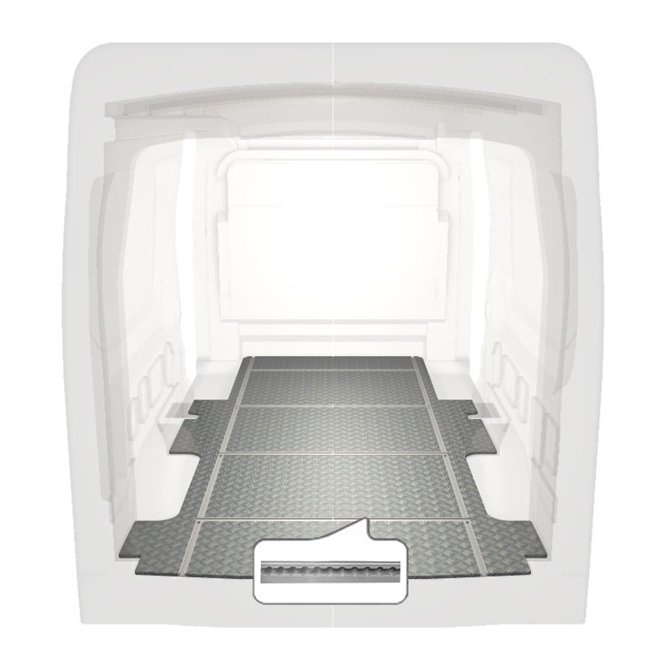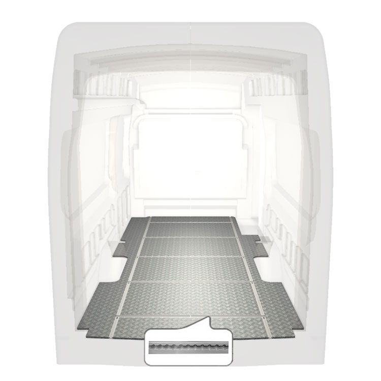 Available for a range of van models, our lightweight and robust floor with transverse rails come with anti-slip aluminum tread plate and cargo rails (longitudinal and transverse) for quick and safe installation of racking systems and other accessories. The floor installation requires no drilling and is fitted using highly adhesive glue, which is stronger than nuts and bolts, and protects the residual value of the vehicle.