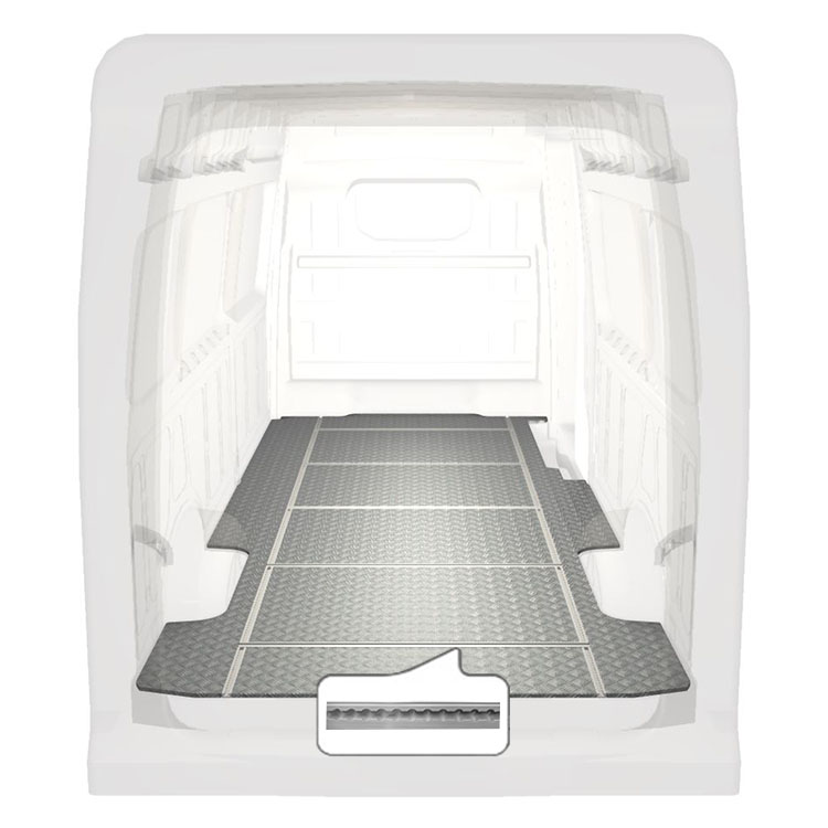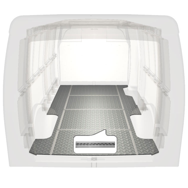 Available for a range of van models, our lightweight and robust floor with transverse rails come with anti-slip aluminum tread plate and cargo rails (longitudinal and transverse) for quick and safe installation of racking systems and other accessories. The floor installation requires no drilling and is fitted using highly adhesive glue, which is stronger than nuts and bolts, and protects the residual value of the vehicle.