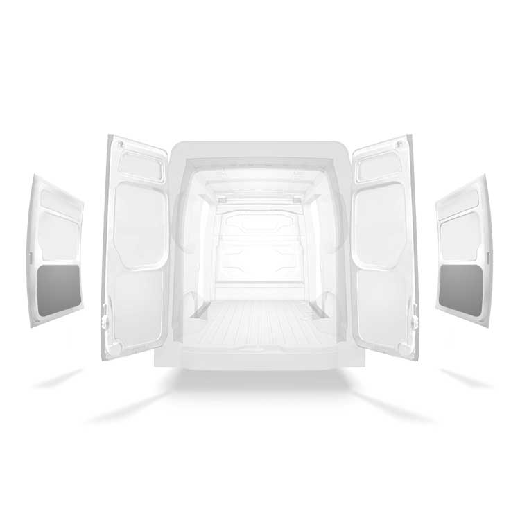 We offer pre-designed van linings, tailor-made for specific vehicles.  Our range of lightweight linings come as pre-cut liners to fit between beams or available as full panels.  To complete your van conversion, our roof linings, rear and side door linings are available to purchase separately. All our linings can be fitted using highly adhesive glue or screws if preferred.