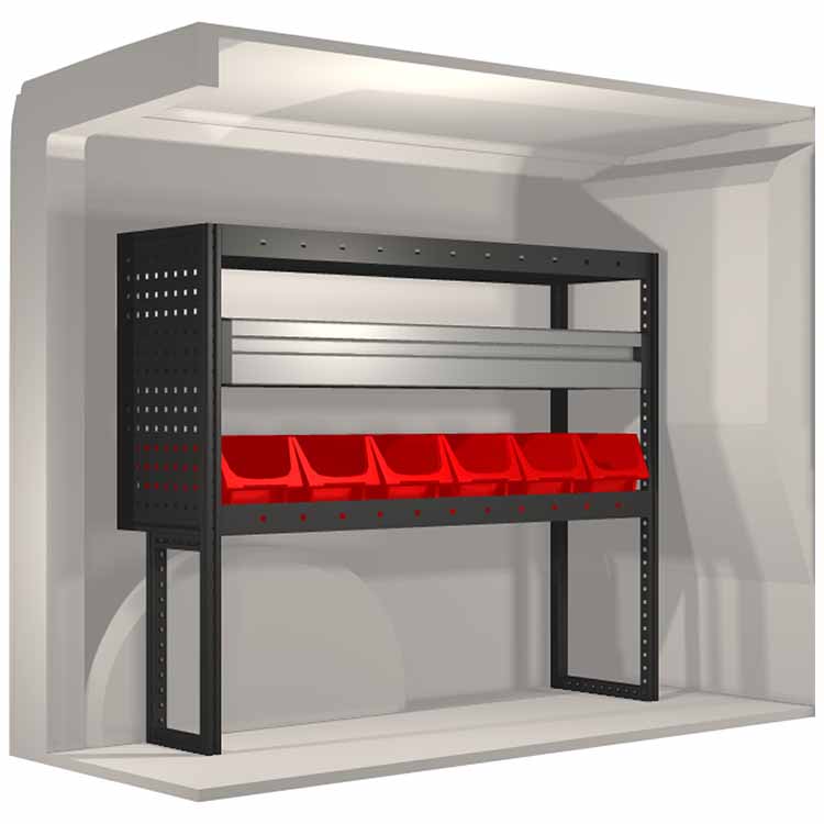 The racking has been specially designed to ensure the optimum fit to the vehicle, as well as the best possible functionality and safety. It has been developed for professional use, is flexible and is intended for service jobs in various types of business. All shelves are equipped with rubber mats, and all drawers with foam plastic liners. Assembly material is included.