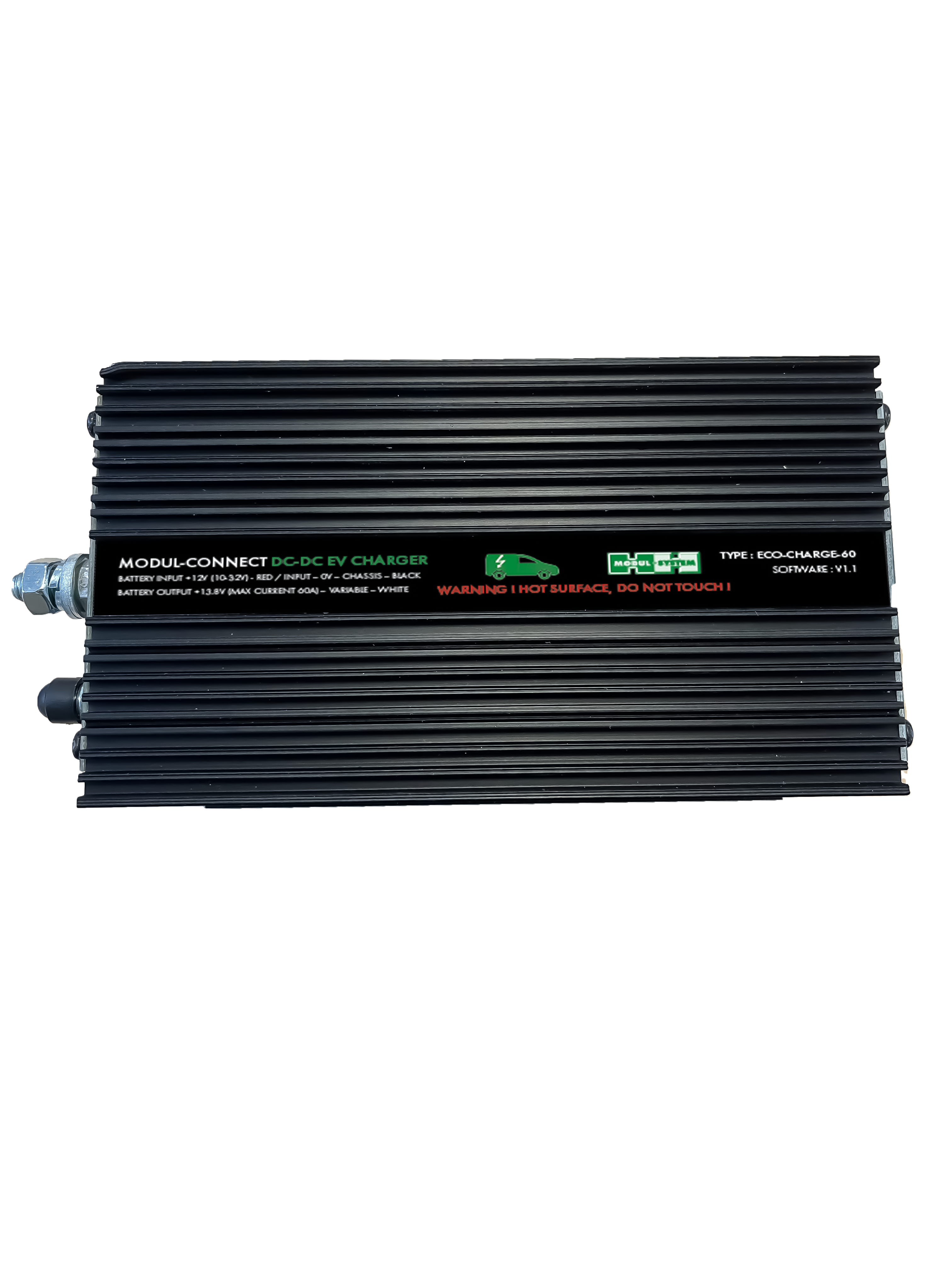 The Modul-System unique EV Dc-Dc Charger 60A allows the vehicles additional lithium auxiliary batteries to be charged at the same time as vehicles high voltage (HV) drive battery and 12v chassis battery. 3-stage battery-to-battery charger suitable for all electric light commercial vehicles, including hybrids.