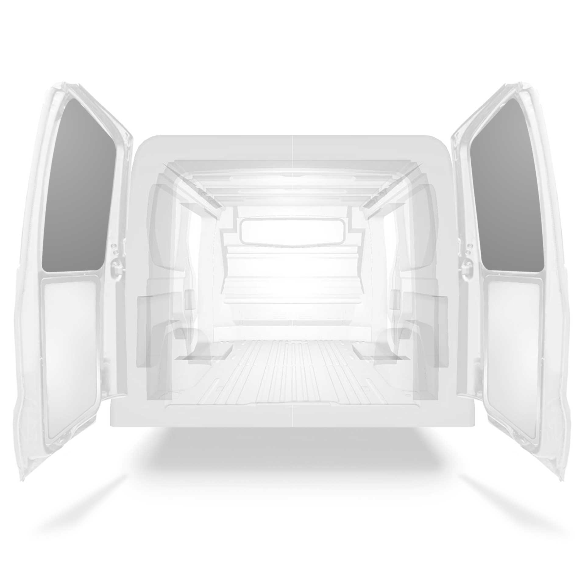 The rear door linings are designed and fabricated to fit in the sections of the rear door/tailgate of the vehicle to minimize weight. The liners protect the vehicle, create a bright working environment and are easy to wipe clean.