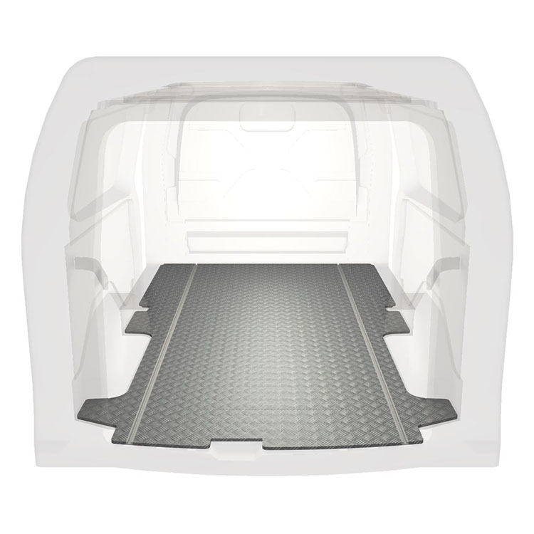 Lightweight and robust extra long floor for a Ford Transit Custom with anti-slip aluminum tread plate and cargo rails (longitudinal) for quick and safe installation of racking systems and other accessories.