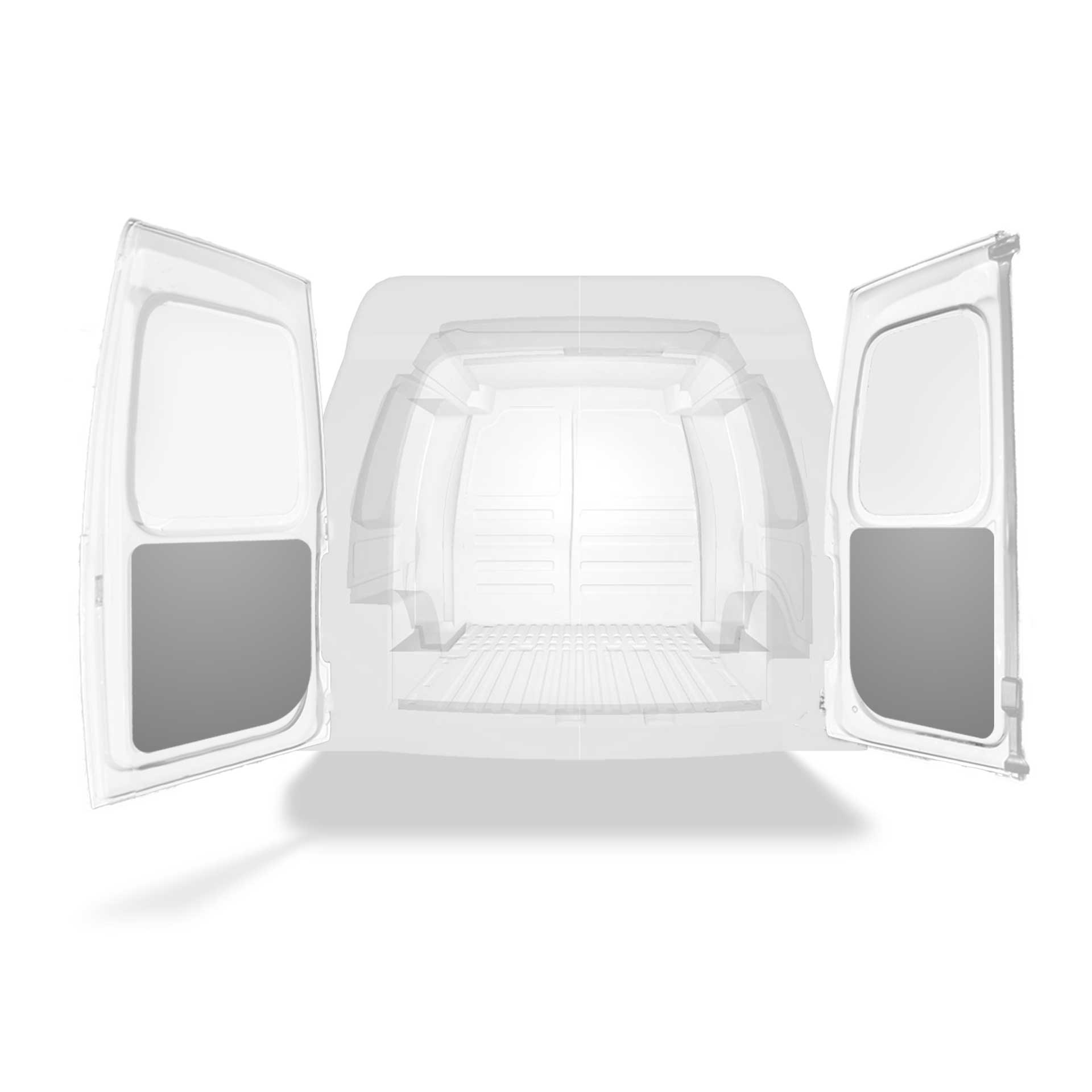The rear door linings are designed and fabricated to fit in the sections of the rear door/tailgate of the vehicle to minimize weight. The liners protect the vehicle, create a bright working environment and are easy to wipe clean.