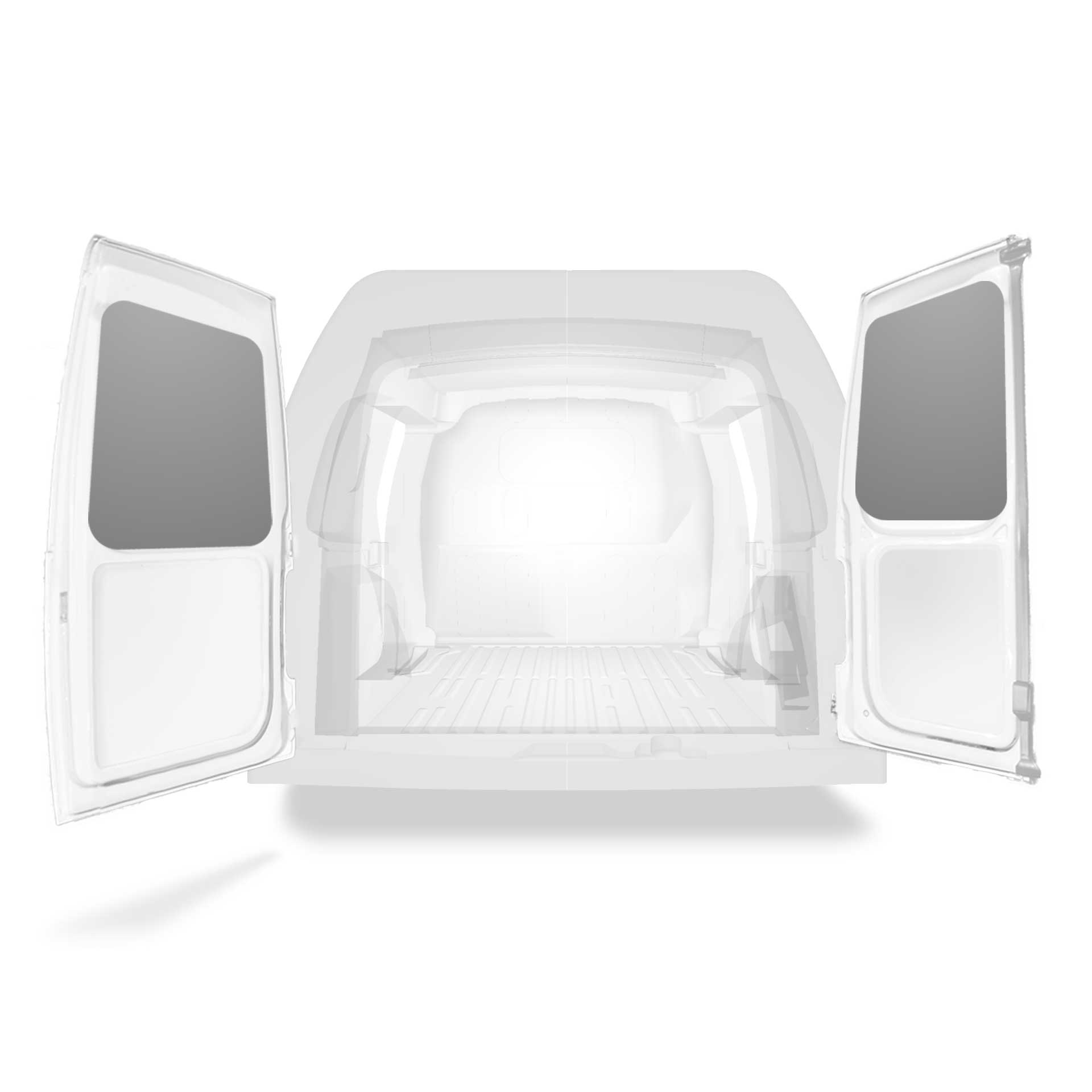 The rear door linings are designed and fabricated to fit in the sections of the rear door/tailgate of the vehicle to minimize weight. The liners protect the vehicle, create a bright working environment and are easy to wipe clean.