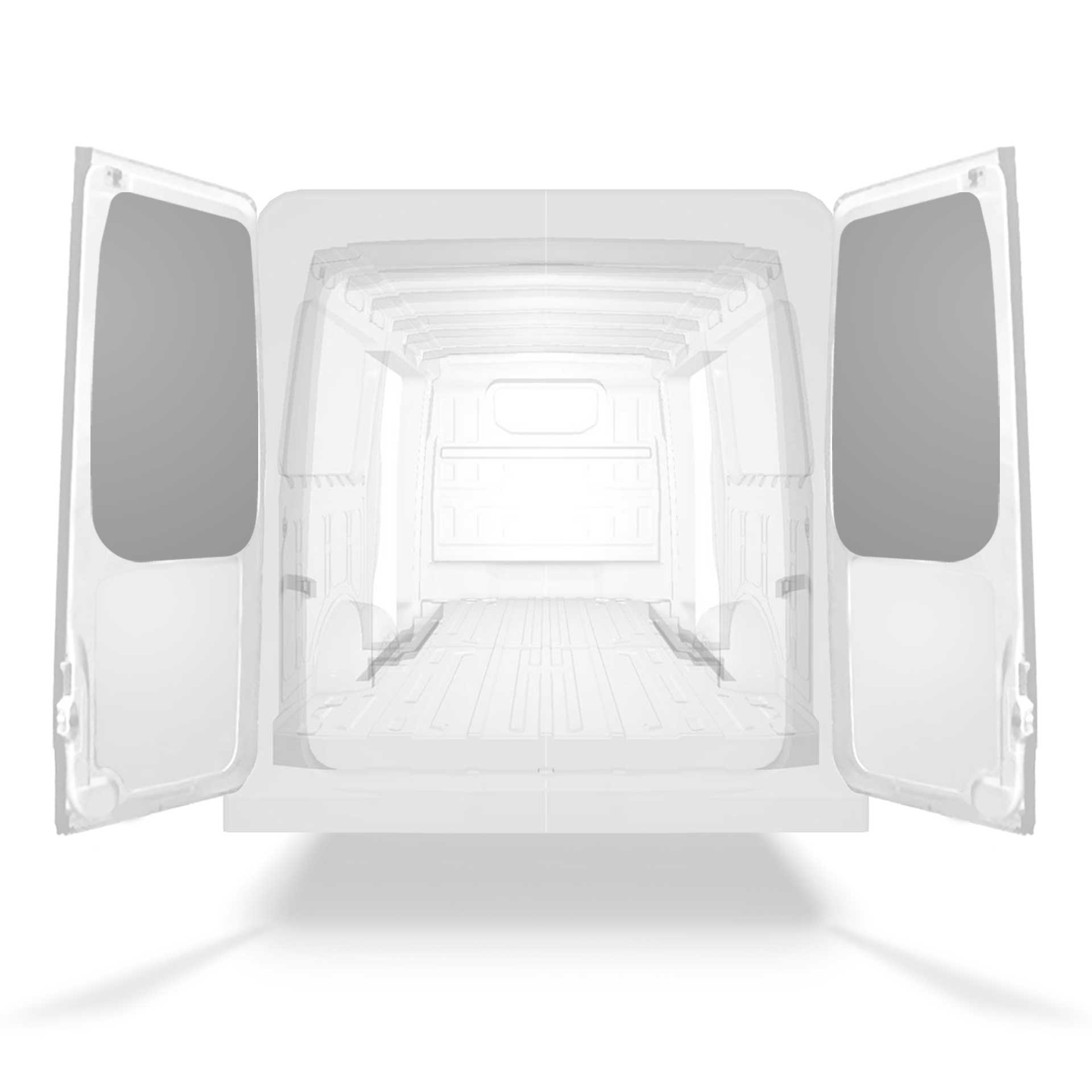 The rear door linings are designed and fabricated to fit in the sections of the rear door/tailgate of the vehicle to minimize weight. The liners protect the vehicle, create a bright working environment and are easy to wipe clean.