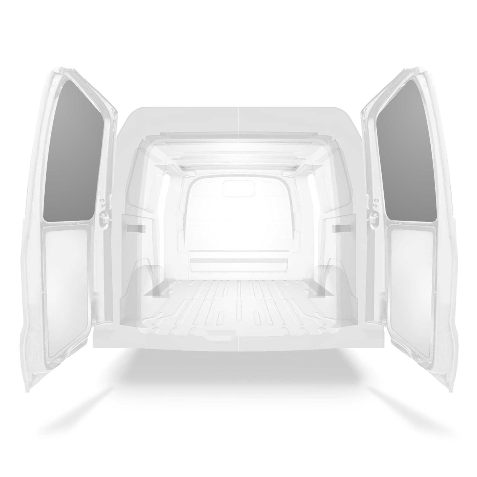 The rear door linings are designed and fabricated to fit in the sections of the rear door/tailgate of the vehicle to minimize weight. The liners protect the vehicle, create a bright working environment and are easy to wipe clean.