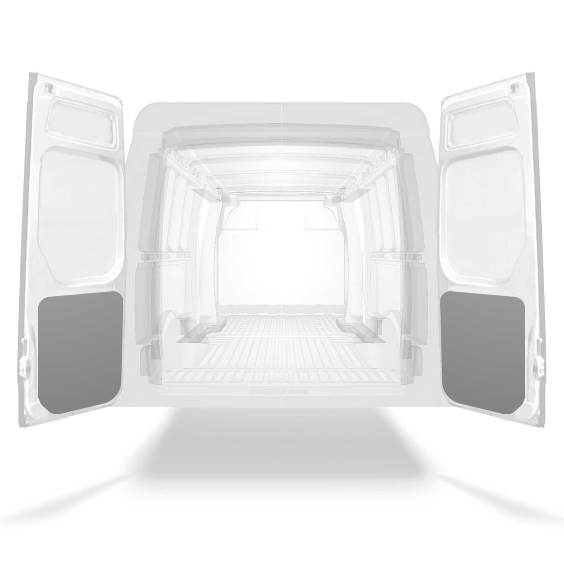The rear door linings are designed and fabricated to fit in the sections of the rear door/tailgate of the vehicle to minimize weight. The liners protect the vehicle, create a bright working environment and are easy to wipe clean.