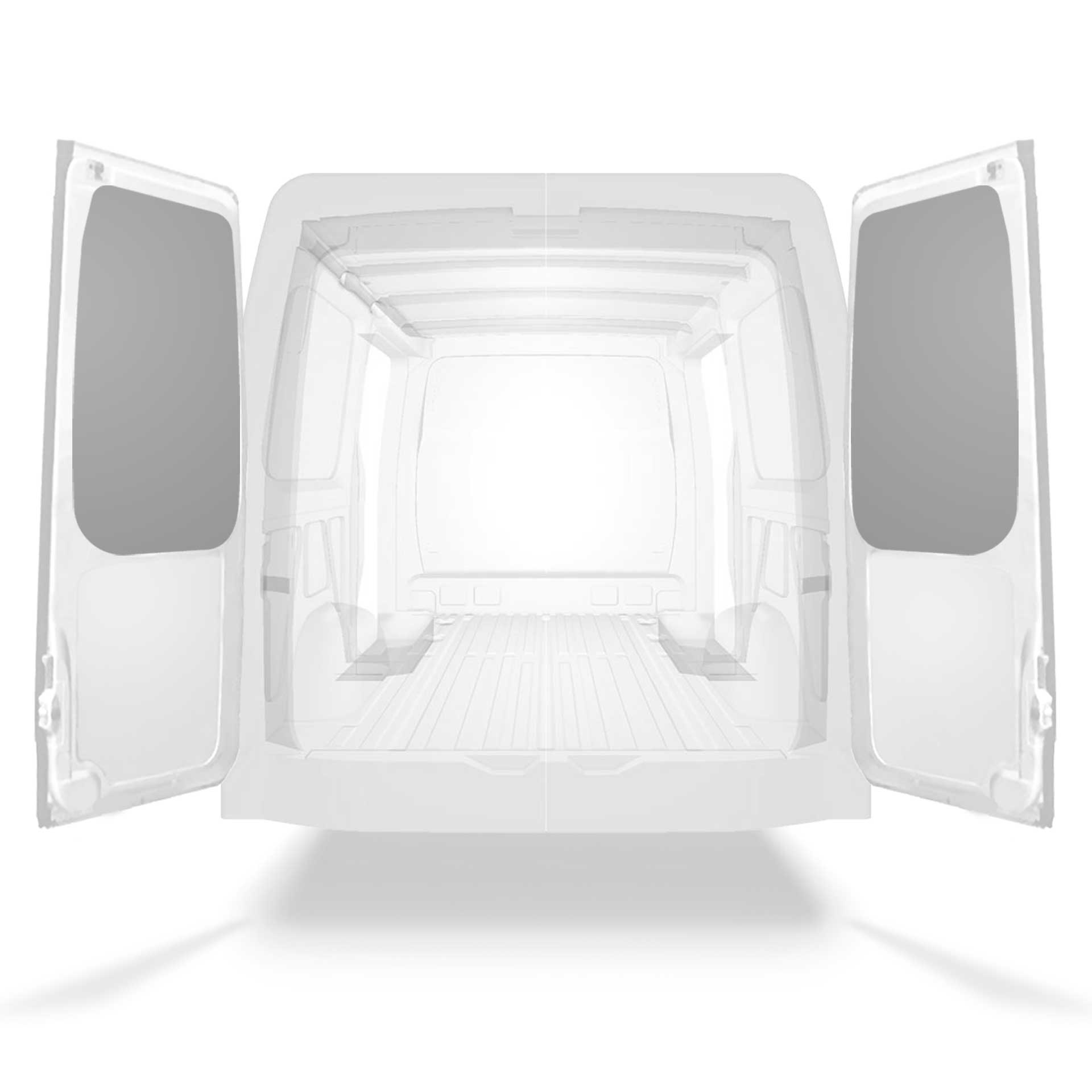 The rear door linings are designed and fabricated to fit in the sections of the rear door/tailgate of the vehicle to minimize weight. The liners protect the vehicle, create a bright working environment and are easy to wipe clean.
