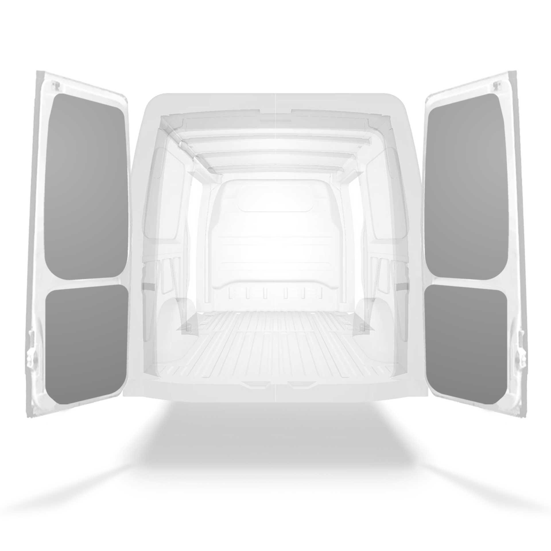 The rear door linings are designed and fabricated to fit in the sections of the rear door/tailgate of the vehicle to minimize weight. The liners protect the vehicle, create a bright working environment and are easy to wipe clean.
