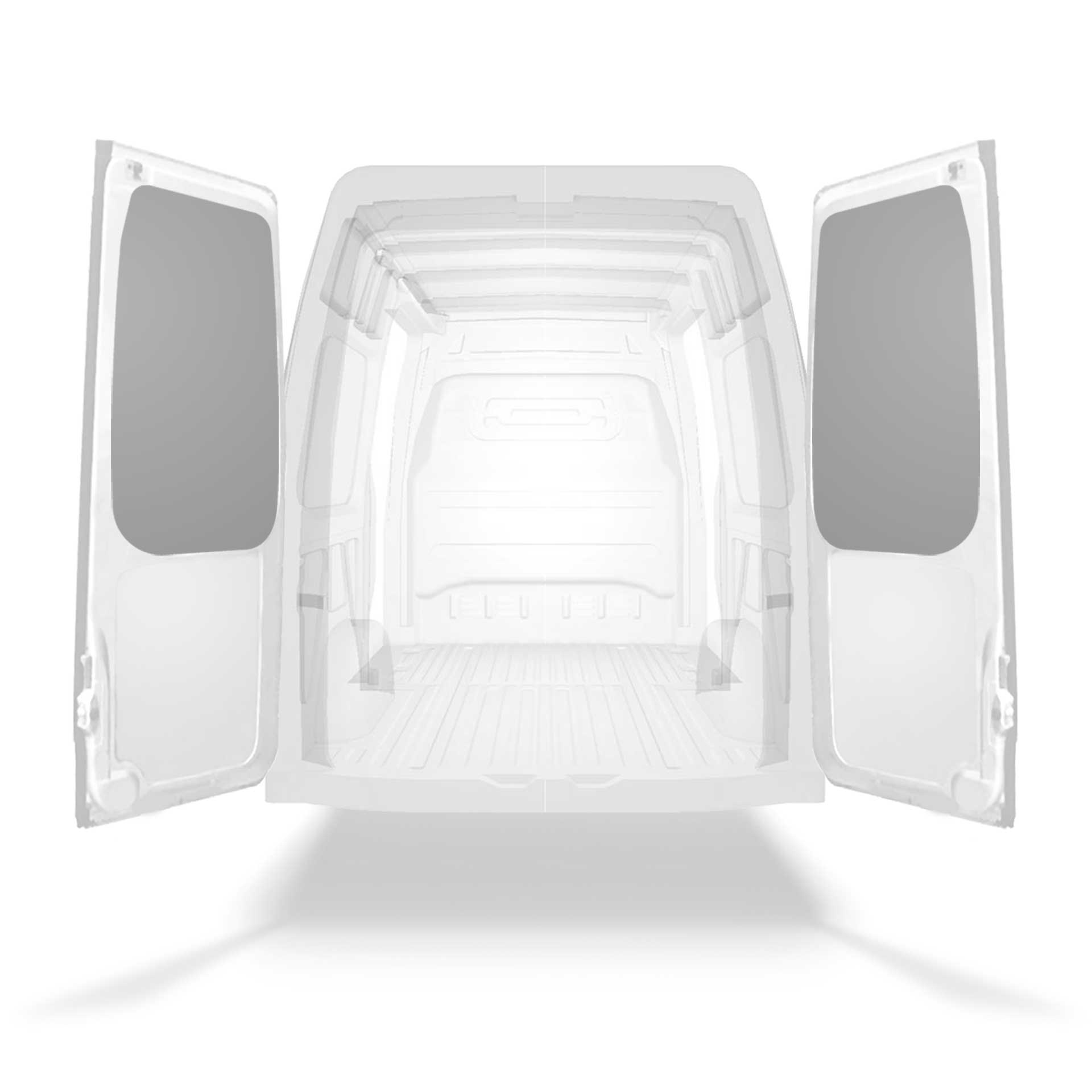 The rear door linings are designed and fabricated to fit in the sections of the rear door/tailgate of the vehicle to minimize weight. The liners protect the vehicle, create a bright working environment and are easy to wipe clean.