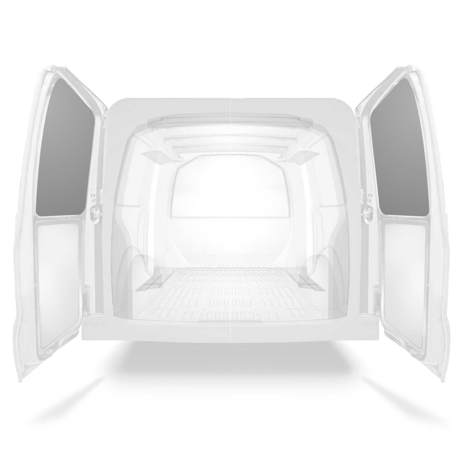 The rear door linings are designed and fabricated to fit in the sections of the rear door/tailgate of the vehicle to minimize weight. The liners protect the vehicle, create a bright working environment and are easy to wipe clean.
