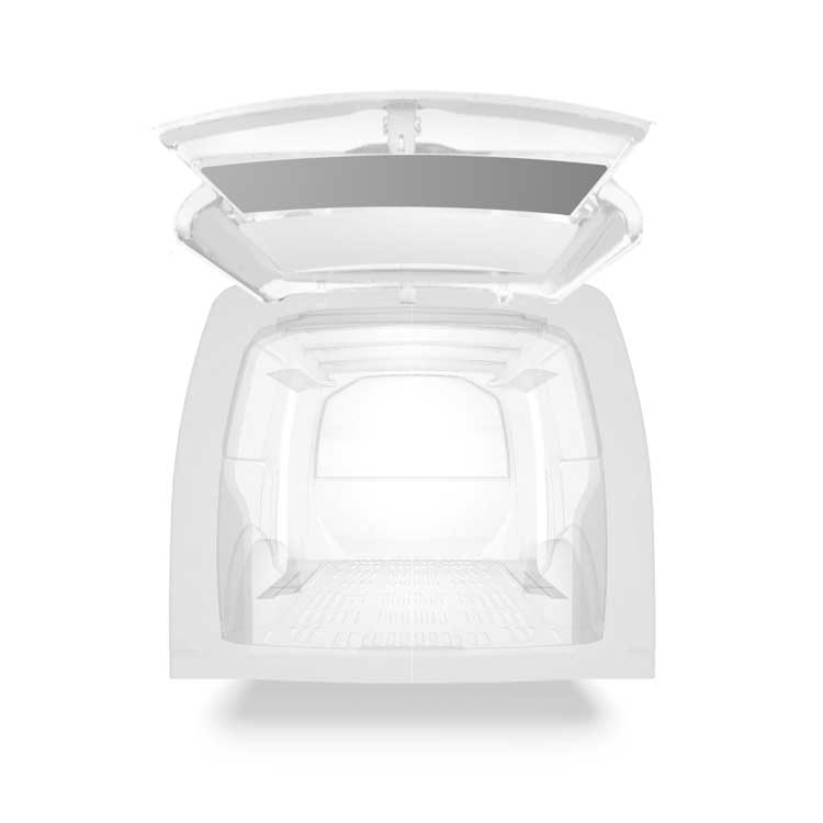 The rear door linings are designed and fabricated to fit in the sections of the rear door/tailgate of the vehicle to minimize weight. The liners protect the vehicle, create a bright working environment and are easy to wipe clean.