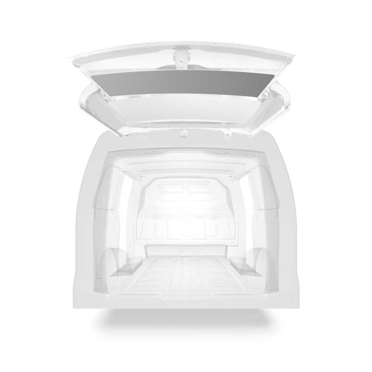 The rear door linings are designed and fabricated to fit in the sections of the rear door/tailgate of the vehicle to minimize weight. The liners protect the vehicle, create a bright working environment and are easy to wipe clean.