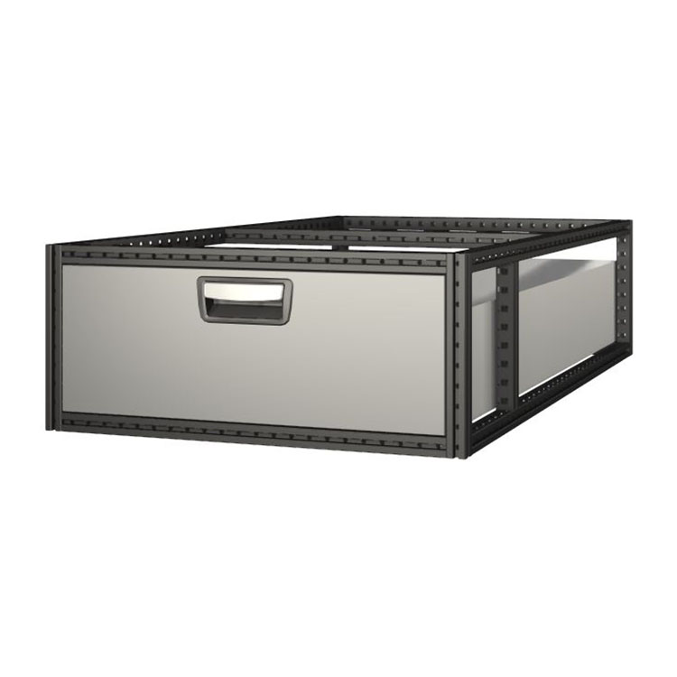 The extra-long drawer units have a frame from ultra-high strength steel and drawers from aluminum. The drawers are equipped with ball bearings as standard, and the mix from fixed and flexible bearings makes them both stable and easy to operate.