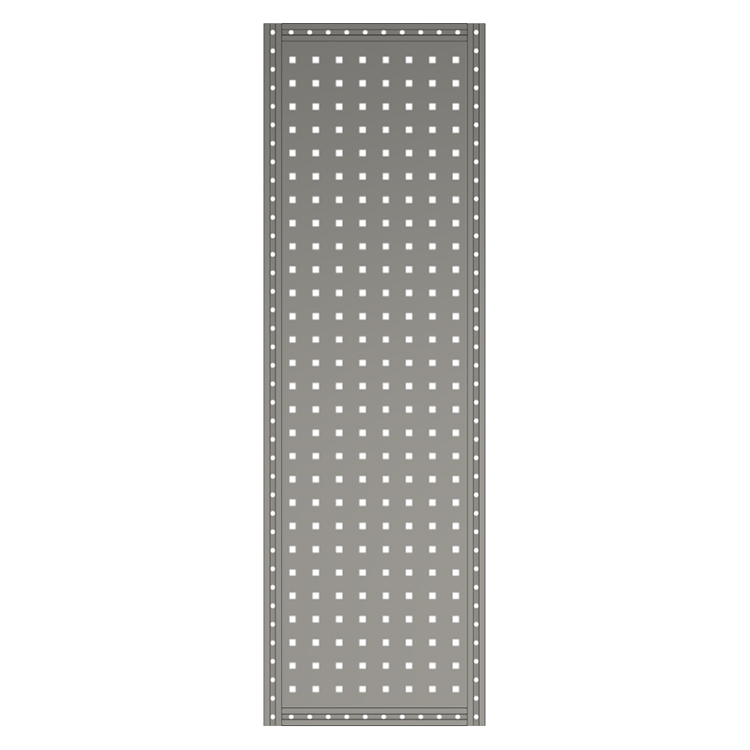 Shelf end supports with tool board are available in several heights and depths. The T-tracks integrated in the profiles are used for securing cargo, attaching accessories and for versatile surface mounting.