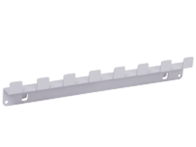 The tool board is designed for work benches with a width of 1458 mm. The metal plate is punched with 9 mm holes at 34 mm pitch spacing. With the addition of tool hooks it provides a flexible system for tool storage, etc.