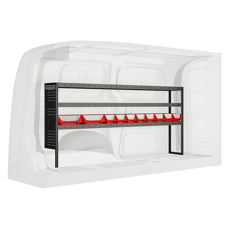 The racking has been specially designed to ensure the optimum fit to the vehicle, as well as the best possible functionality and safety. It has been developed for professional use, is flexible and is intended for service jobs in various types of business. All shelves are equipped with rubber mats, and all drawers with foam plastic liners.