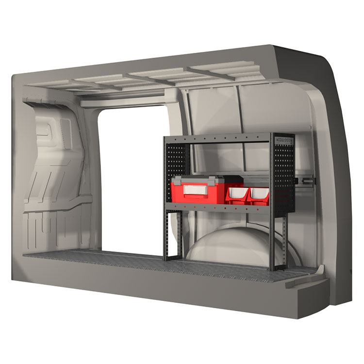 The racking has been specially designed to ensure the optimum fit to the vehicle, as well as the best possible functionality and safety. It has been developed for professional use, is flexible and is intended for service jobs in various types of business. All shelves are equipped with rubber mats, and all drawers with foam plastic liners. Assembly material is included.