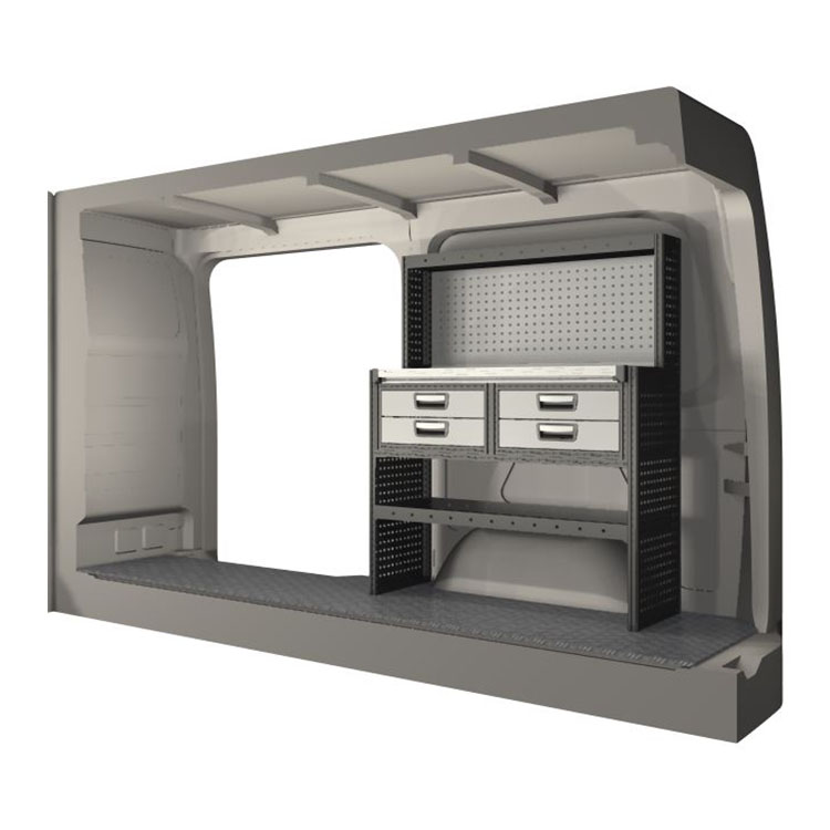 The racking has been specially designed to ensure the optimum fit to the vehicle, as well as the best possible functionality and safety. It has been developed for professional use, is flexible and is intended for service jobs in various types of business. All shelves are equipped with rubber mats, and all drawers with foam plastic liners. Assembly material is included.