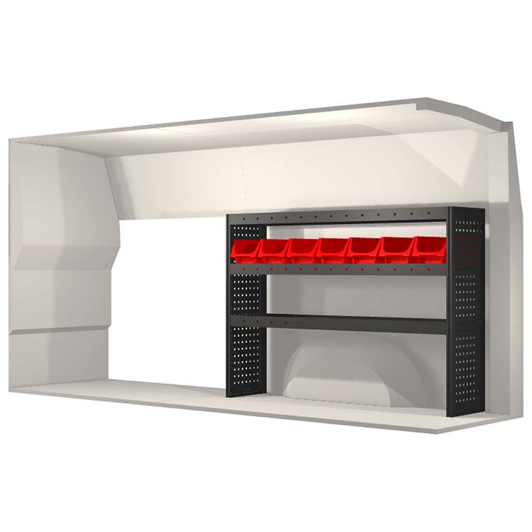 The racking has been specially designed to ensure the optimum fit to the vehicle, as well as the best possible functionality and safety. It has been developed for professional use, is flexible and is intended for service jobs in various types of business. All shelves are equipped with rubber mats, and all drawers with foam plastic liners. Assembly material is included.