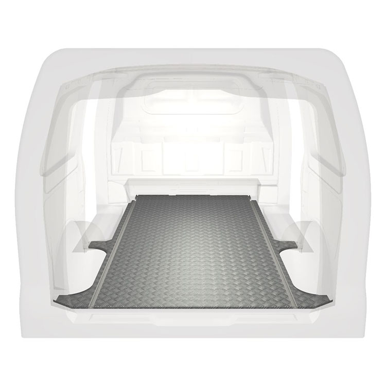 Lightweight and robust extra long floor for a Mercedes Vito with anti-slip aluminum tread plate and cargo rails (longitudinal) for quick and safe installation of racking systems and other accessories.