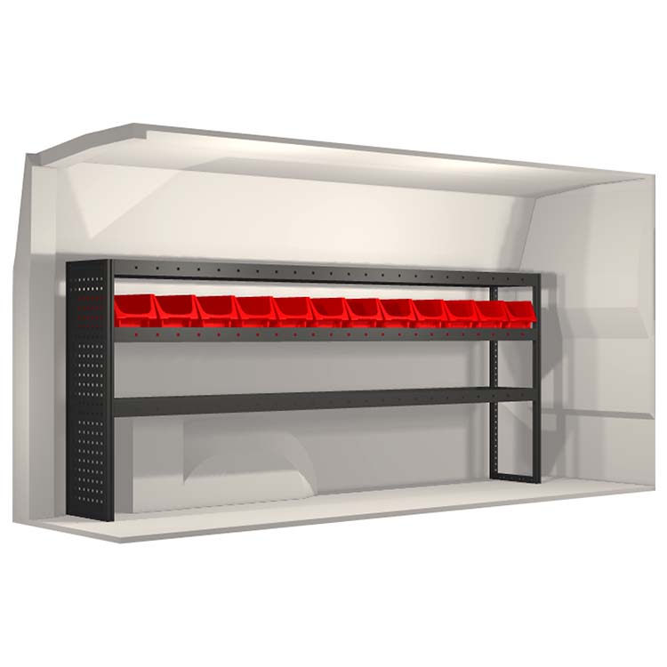 The racking has been specially designed to ensure the optimum fit to the vehicle, as well as the best possible functionality and safety. It has been developed for professional use, is flexible and is intended for service jobs in various types of business. All shelves are equipped with rubber mats, and all drawers with foam plastic liners. Assembly material is included.