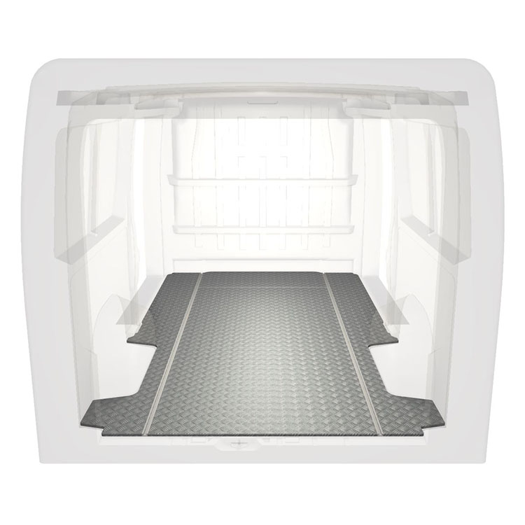 Lightweight and robust extra long floor for a Citroën Jumper / Peugeot Boxer / Fiat Ducato with anti-slip aluminum tread plate and cargo rails (longitudinal) for quick and safe installation of racking systems and other accessories.