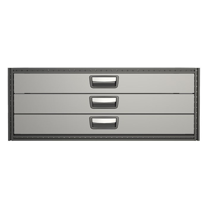 Each drawer is fitted with ball bearing runners as standard, and has a load capacity of 60 kg with a maximum of 150 kg per drawer unit. The drawers are fully extendable and equipped with stoppers. For maximum utility, the drawer unit can be equipped with accessories such as foam plastic liners, plastic inserts and dividers. To help optimize the weight, cover panels and tool boards are optional.