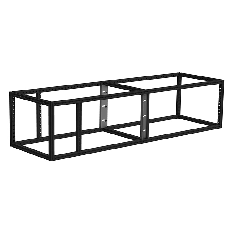 Drawer unit frame for individual configuration of an extra-long drawer unit. The reinforced frame, made from ultra-high strength steel, has a high bearing capacity, which makes it the perfect base for double floors.