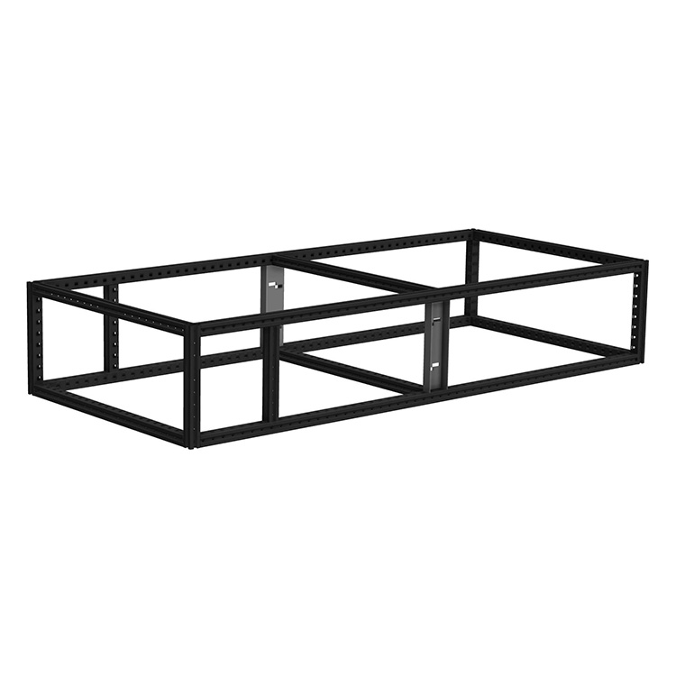 Drawer unit frame for individual configuration of an extra-long drawer unit. The reinforced frame, made from ultra-high strength steel, has a high bearing capacity, which makes it the perfect base for double floors.