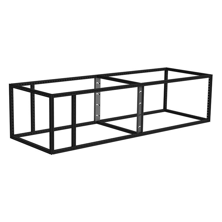 Drawer unit frame for individual configuration of an extra-long drawer unit. The reinforced frame, made from ultra-high strength steel, has a high bearing capacity, which makes it the perfect base for double floors.