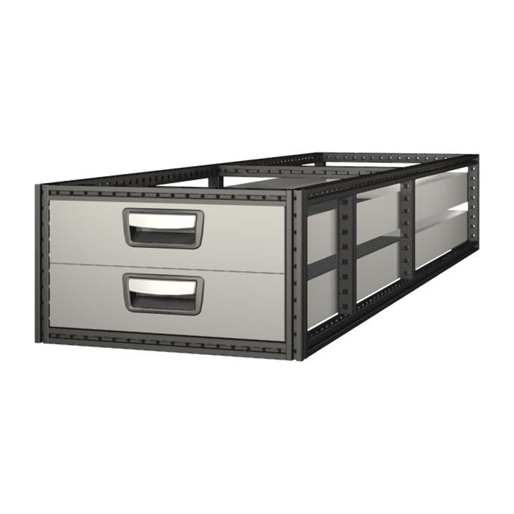 All drawers have twin locking pins to keep the drawer in place while driving. Additionally all drawers are equipped with a crash restraint panel (CRP), a feature that prevents heavy loads from being propelled forward in the event of an accident.