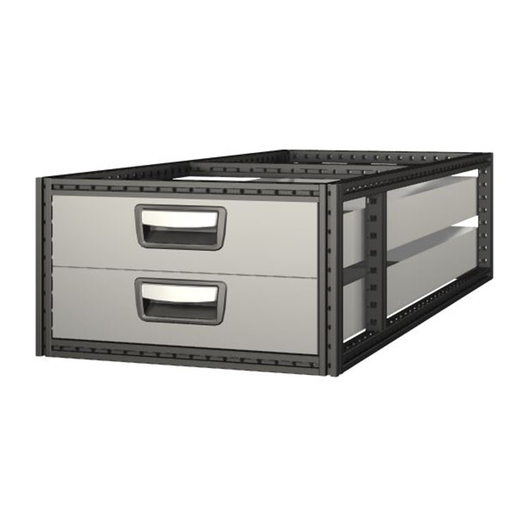 All drawers have twin locking pins to keep the drawer in place while driving. Additionally all drawers are equipped with a crash restraint panel (CRP), a feature that prevents heavy loads from being propelled forward in the event of an accident.