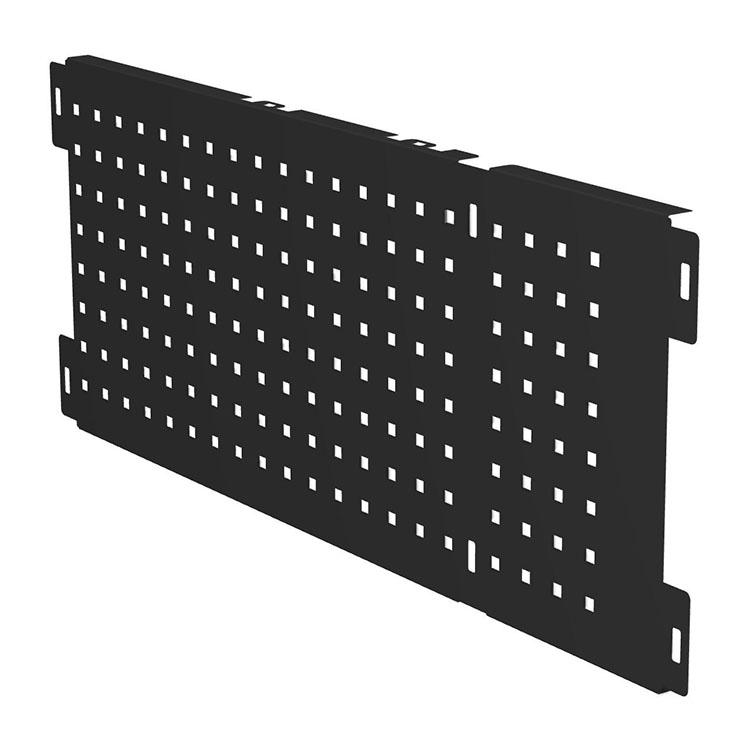 Tool board for extra-long drawer unit. It protects the drawer while contributing to a nice design. The tool board is punched with 9 mm holes at 34 mm pitch spacing, which permits attachment of tool holders and other accessories. Installed using screws (not included).