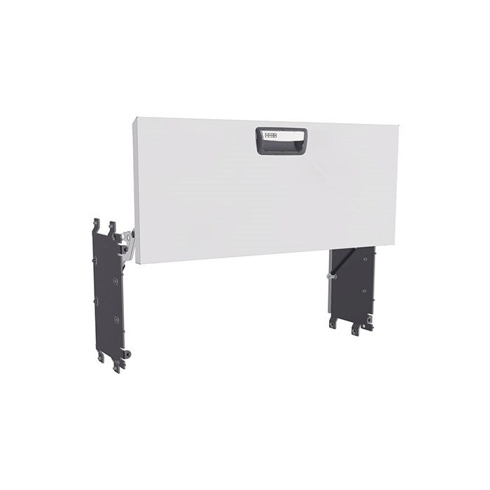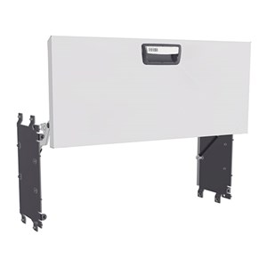 The doors, equipped with gas springs, are designed to open upwards to provide maximum use of floor space, easier loading, and improved ergonomics for the user. Please note that the vertically opening door cannot be combined with a bench top.