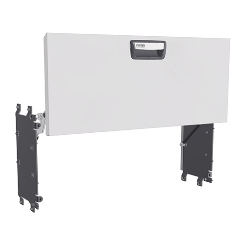 The doors, equipped with gas springs, are designed to open upwards to provide maximum use of floor space, easier loading, and improved ergonomics for the user. Please note that the vertically opening door cannot be combined with a bench top.