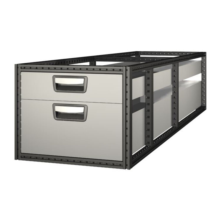 The extra-long drawer units have a frame from ultra-high strength steel and drawers from aluminum. The drawers are equipped with ball bearings as standard, and the mix from fixed and flexible bearings makes them both stable and easy to operate.
