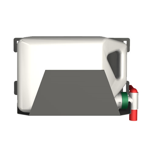 The water dispenser comes complete with a container and a tap. The container can hold up to 5L liquid, and can be turned to face right or left. The water dispenser is mounted to a wall, alternatively to a 324 mm deep racking kit.