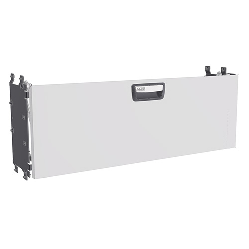 The frame can be placed over a wheel arch, providing a very secure foundation for drawer units and/or lockers with a load capacity of up to 200 kg. The clearance is 351/459 mm. Add cover panels to the frame (kit for horizontal locker), a drop-down door, or an EGS door that opens vertically upwards. A bench top can be fitted to create an additional work surface.