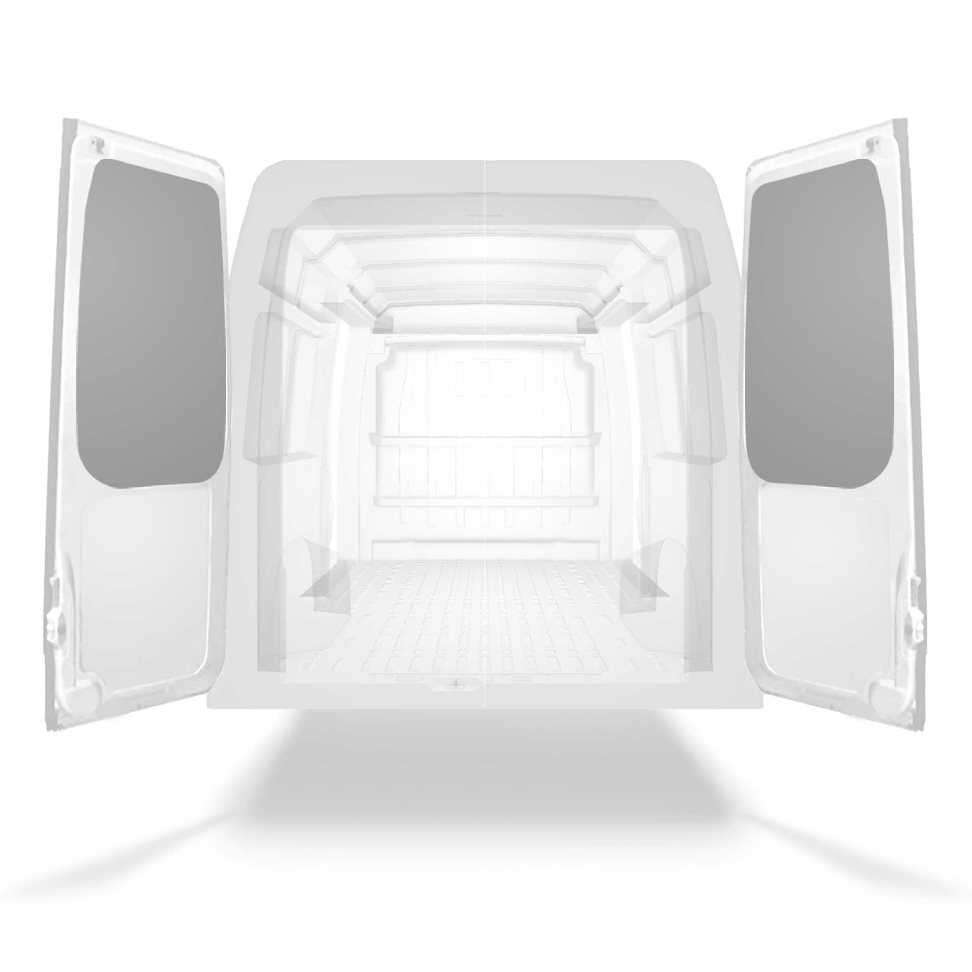 The rear door linings are designed and fabricated to fit in the sections of the rear door/tailgate of the vehicle to minimize weight. The liners protect the vehicle, create a bright working environment and are easy to wipe clean.