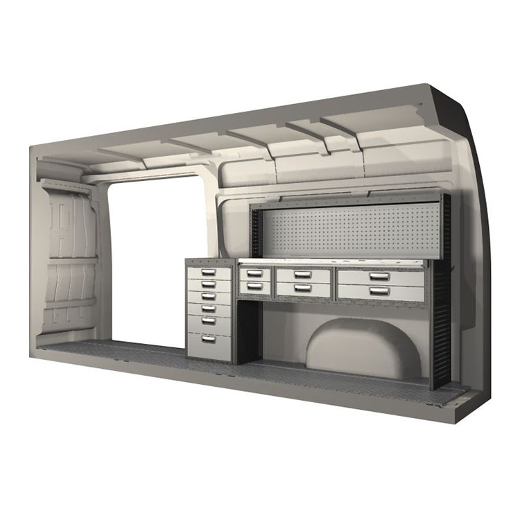 The racking has been specially designed to ensure the optimum fit to the vehicle, as well as the best possible functionality and safety. It has been developed for professional use, is flexible and is intended for service jobs in various types of business. All shelves are equipped with rubber mats, and all drawers with foam plastic liners. Assembly material is included.