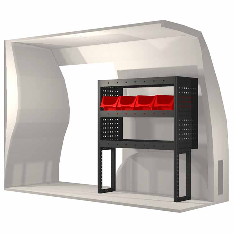The racking has been specially designed to ensure the optimum fit to the vehicle, as well as the best possible functionality and safety. It has been developed for professional use, is flexible and is intended for service jobs in various types of business. All shelves are equipped with rubber mats, and all drawers with foam plastic liners. Assembly material is included.