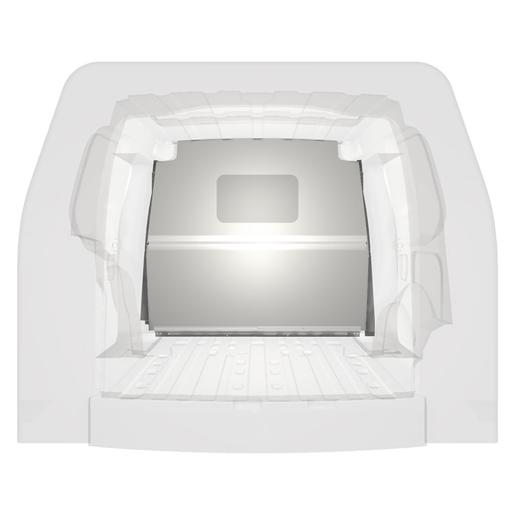 Lightweight, robust and collision safe bulkhead for Caddy Cargo and Caddy Cargo Maxi with double side doors.