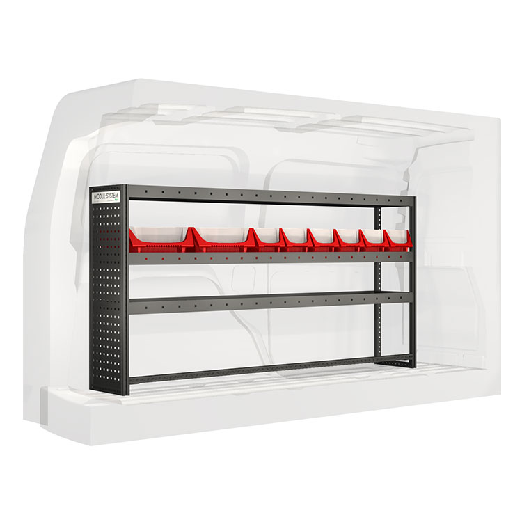 The racking has been specially designed to ensure the optimum fit to the vehicle, as well as the best possible functionality and safety. It has been developed for professional use, is flexible and is intended for service jobs in various types of business. All shelves are equipped with rubber mats, and all drawers with foam plastic liners. Assembly material is included.