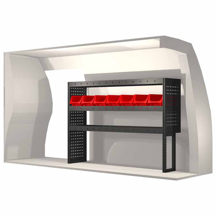 The racking has been specially designed to ensure the optimum fit to the vehicle, as well as the best possible functionality and safety. It has been developed for professional use, is flexible and is intended for service jobs in various types of business. All shelves are equipped with rubber mats, and all drawers with foam plastic liners. Assembly material is included.